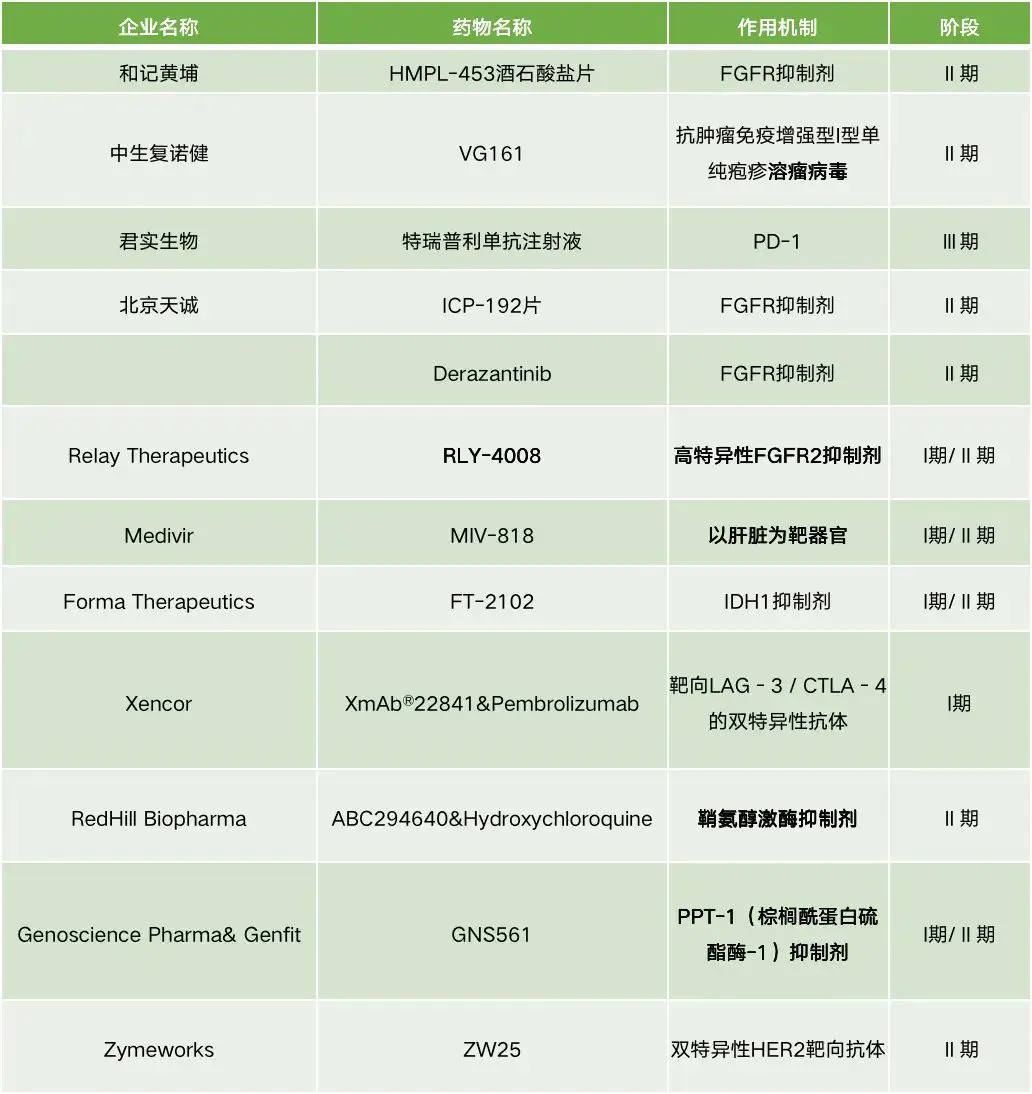 除了FGFR2和IDH1两大靶点外,未来还有哪些值得期待的治疗靶点和在研新药?